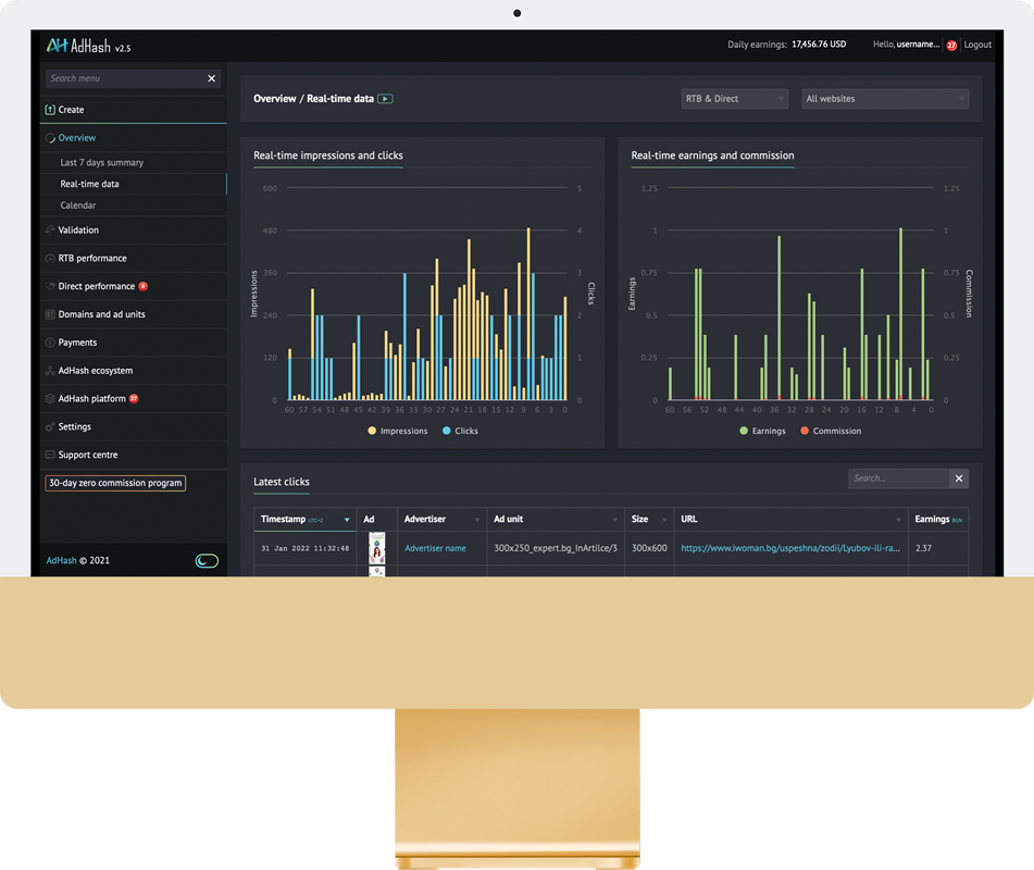 Explore granular real-time reports broken down by over 30 different parameters, including advertisers, locations, languages, timing, devices, unique views, time-to-click, and many more.